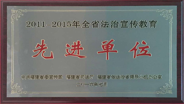 10月12日,在福建省國(guó)資委全系統(tǒng)“六五”普法總結(jié)表彰暨“七五”普法動(dòng)員部署大會(huì)上,公司榮獲“2011-2015年全省法治宣傳教育先進(jìn)單位”榮譽(yù)稱號(hào),此項(xiàng)評(píng)選活動(dòng)由福建省委宣傳部、省司法廳、省依法治省辦組織。