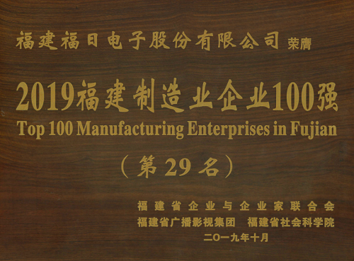 2019年10月24日,由福建省企業(yè)與企業(yè)家聯(lián)合會、福建省社會科學(xué)院、福建省廣播影視集團(tuán)共同舉辦的2019年福建企業(yè)100強(qiáng)研究發(fā)布會在福建漳州舉行,福建福日電子股份有限公司入選2019福建制造業(yè)企業(yè)100強(qiáng)。福日電子總裁溫春旺受邀參會。