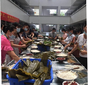 活動現(xiàn)場,糯米、紅棗、粽葉等材料擺放在桌子上。經(jīng)驗豐富的員工向身邊的新手教授包粽子的方法,粽葉重疊再折疊,卷成漏斗狀后,用糯米、紅棗等充實壓緊,再用繩一繞一捆,一個個精美的粽子就誕生了。本次活動歷時2小時,參加活動的員工手工制作了1000多個粽子。包好的粽子在公司食堂蒸熟后,公司人資部工作人員負(fù)責(zé)分裝粽子,總經(jīng)辦相關(guān)負(fù)責(zé)人分別走到各部門、倉庫、宿舍等,將粽子分發(fā)到員工手上,讓員工充分感受到企業(yè)的關(guān)懷。