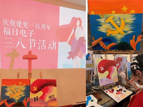 第111個(gè)“三八”國(guó)際婦女節(jié)如約而至,為慶祝建黨100周年,福日電子工會(huì)為每位女職工獻(xiàn)上了精美的花束,并組織了一場(chǎng)彩繪頌黨百年華誕活動(dòng)。女職工們輕拾畫筆,用她們靈巧的雙手,把對(duì)黨、對(duì)祖國(guó)和對(duì)美好生活的祝福一筆一劃精心繪入自己作品中。