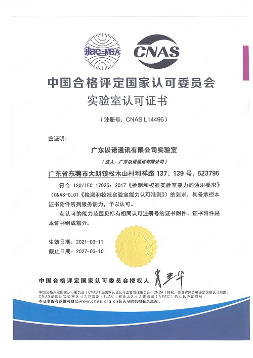 近日,福日電子二級控股子公司廣東以諾通訊有限公司實(shí)驗(yàn)室獲中國合格評定國家認(rèn)可委員會(CNAS)頒發(fā)的實(shí)驗(yàn)室認(rèn)可證書,標(biāo)志其已具備相應(yīng)的檢測技術(shù)能力和管理能力,提升了數(shù)據(jù)的可信度和含金量,避免重復(fù)性檢測,減少企業(yè)成本,提升公司整體形象和品牌價值。以諾通訊實(shí)驗(yàn)室將遵循“專業(yè)、嚴(yán)謹(jǐn)、誠信、創(chuàng)新”理念,積極拓展測試種類和試驗(yàn)項(xiàng)目,滿足各類客戶需求,持續(xù)提升公司實(shí)驗(yàn)室的專業(yè)水平。