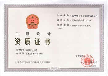 近日,國家住房和城鄉(xiāng)建設部發(fā)布《關于核準2021年度第五批建設工程企業(yè)資質名單的公告》,核準福建福日電子股份有限公司獲得“照明工程設計專項甲級”資質。公司此前已擁有“城市及道路照明工程專業(yè)承包一級”資質,目前正式邁入照明工程“雙甲”資質企業(yè)行列,成為福建省第六家照明工程“雙甲”資質企業(yè)。