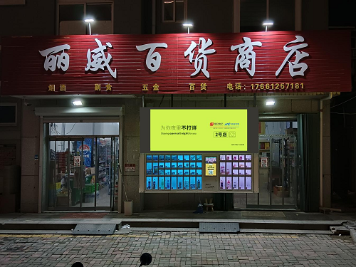 “2號(hào)店”由國(guó)家信息中心與華融資產(chǎn)管理公司合資成立,其針對(duì)小微商戶(hù)研發(fā)的智能銷(xiāo)售終端,平時(shí)隱藏在招牌中,夜間或假期小店關(guān)門(mén)后就從招牌里“降下來(lái)”,讓門(mén)店“一鍵切換”實(shí)現(xiàn)24小時(shí)營(yíng)業(yè),開(kāi)啟了線上線下融合新消費(fèi)模式。為積極響應(yīng)國(guó)家推動(dòng)小店經(jīng)濟(jì)發(fā)展相關(guān)政策,在綜合考慮考量性能、價(jià)格等核心指標(biāo),邁銳光電與“2號(hào)店”強(qiáng)強(qiáng)聯(lián)合,以“讓生意更容易”為出發(fā)點(diǎn),全力打造智能招牌系統(tǒng),提供LED整體解決方案。