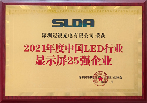 近日,福日電子成員企業(yè)邁銳光電榮獲“2021年度中國(guó)LED行業(yè)顯示屏25強(qiáng)企業(yè)”及“《Mini LED室內(nèi)商用顯示屏》優(yōu)秀參編團(tuán)體”兩項(xiàng)行業(yè)榮譽(yù)。