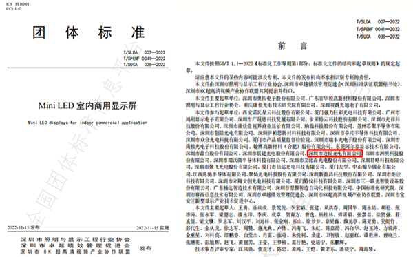 T/SLDA 007—2022《Mini LED室內(nèi)商用顯示屏》團(tuán)體標(biāo)準(zhǔn)在2022年11月15日已發(fā)布并且正式實(shí)施。該標(biāo)準(zhǔn)研制了Mini LED室內(nèi)商用顯示屏各項(xiàng)要求,為產(chǎn)品技術(shù)創(chuàng)新和提升產(chǎn)品質(zhì)量水平給出了標(biāo)桿。邁銳光電作為該標(biāo)準(zhǔn)的起草單位,在積極引導(dǎo)行業(yè)走向標(biāo)準(zhǔn)化和規(guī)范化的同時(shí),強(qiáng)化標(biāo)準(zhǔn)“硬約束”,保障產(chǎn)品高品質(zhì),目前公司推出的Mini LED系列產(chǎn)品已為多個(gè)運(yùn)用場(chǎng)景提供技術(shù)解決方案及優(yōu)質(zhì)的產(chǎn)品服務(wù)。